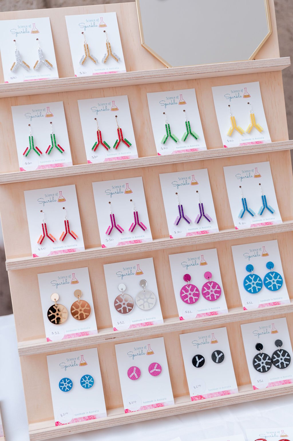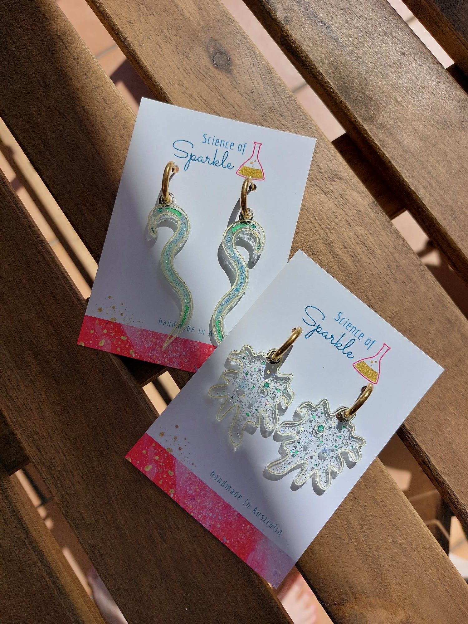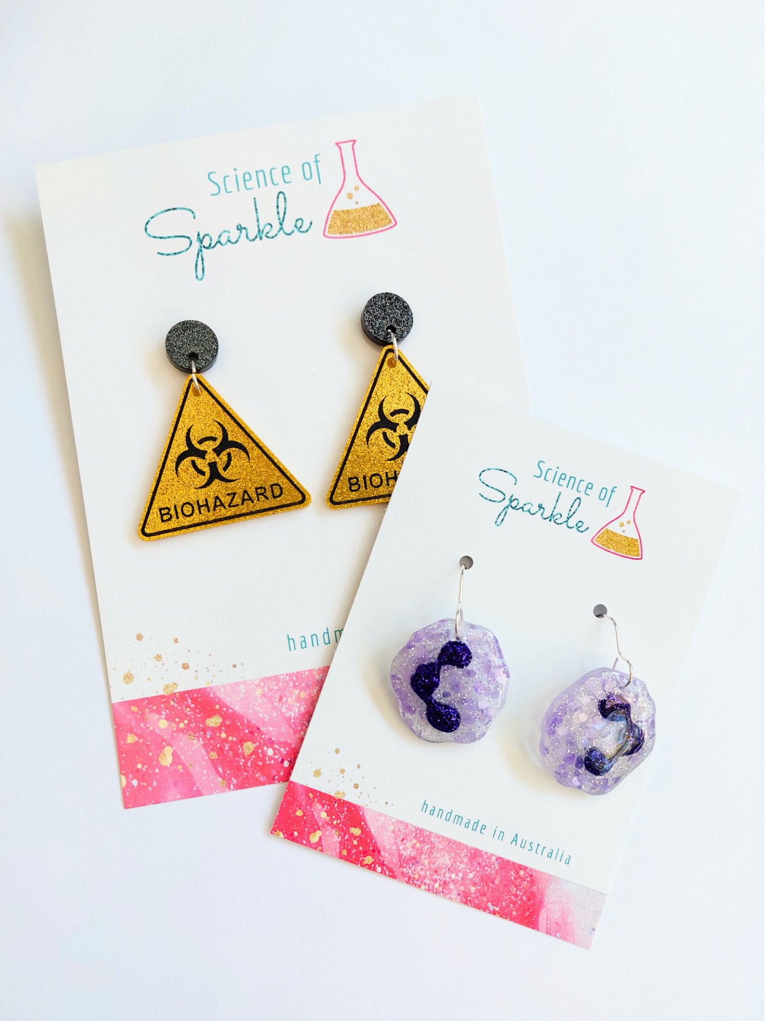 Science-themed jewellery and accessories, hand crafted and filled with colour and sparkle!